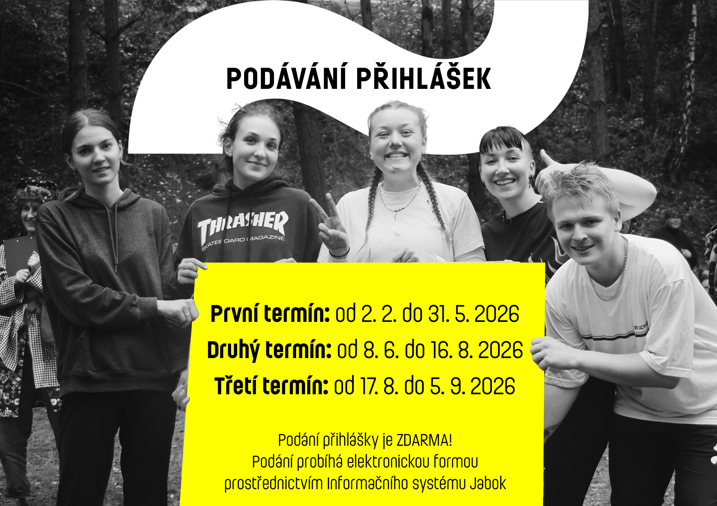 Přihlášky ke studiu na Jaboku ve školním roce 2026/2027 bude možné podávat v termínech: